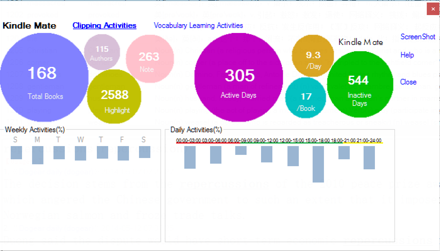 Kindle Mate is a free feature-rich program designed to sync, organize, import & export Kindle clippings and Kindle Vocabulary Builder words on computer.