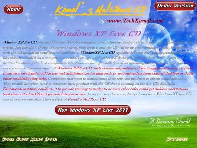 - Live OS : Run XP on fly directly from CD