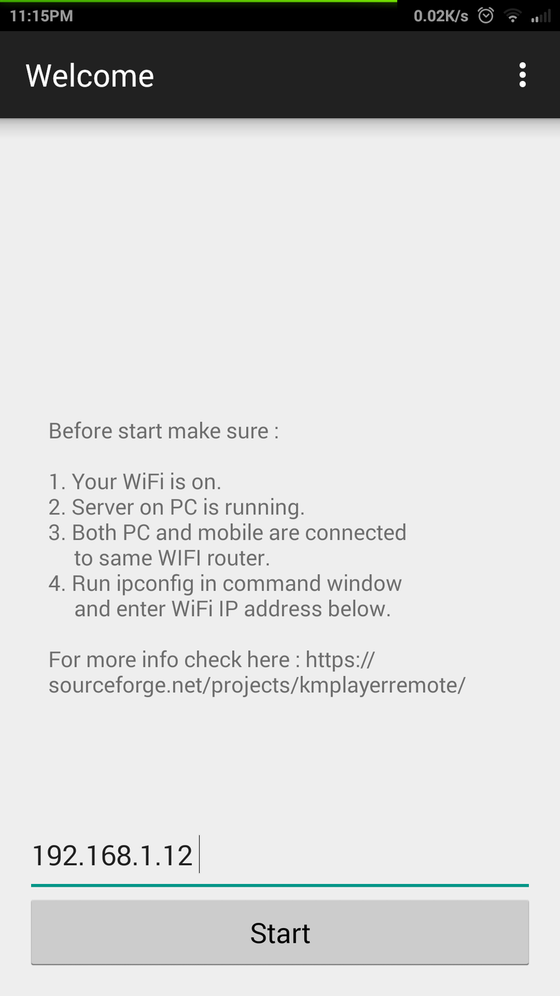 Download Android app from here : https://play.google.com/store/apps/details?id=com.mkkhedawat.kmplayerremote