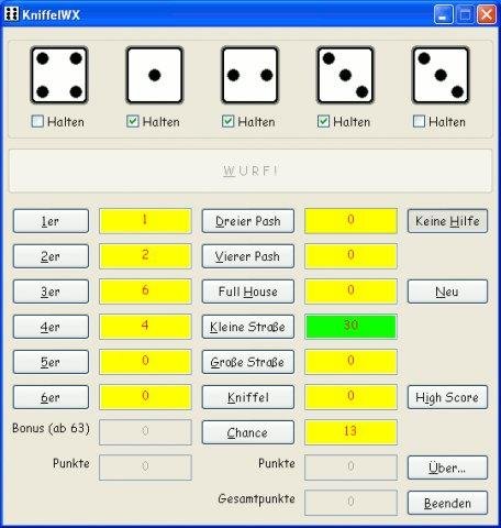 KniffelWX is a cross-platform version of the DiceGame Kniffel