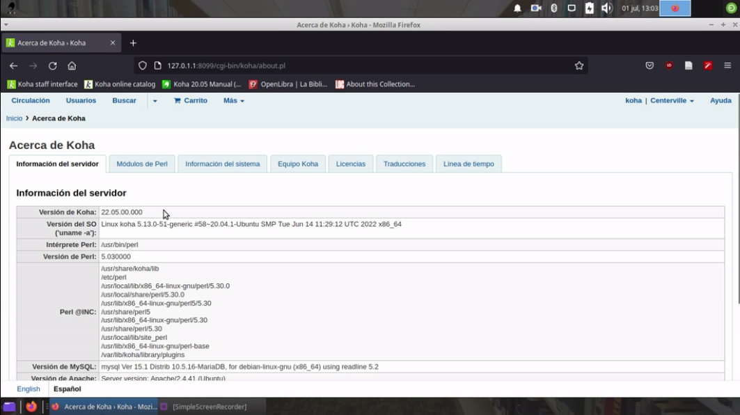 - Usuario: koha Pass: Koha123456