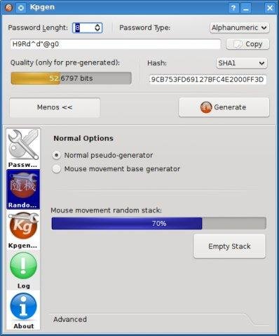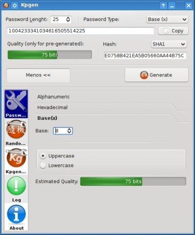 KpGen is an modern Password Generator. It has some interesting features, like a random generator based on mouse move with some strong options. It can also work as a hash calculator, calculating hashes of passwords and phrases.