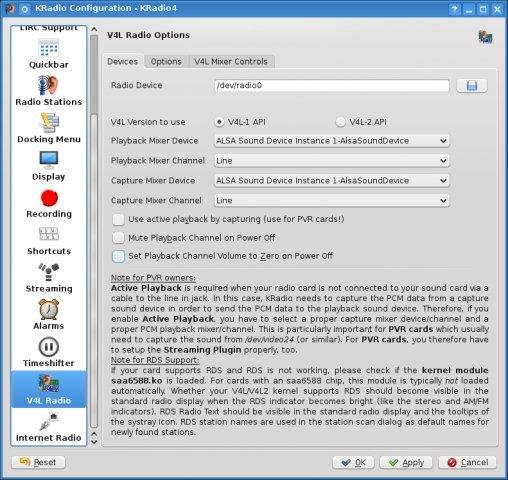 - Linux Radio Devices with V4L1 / V4L2 support (incl. PVR cards and RDS)