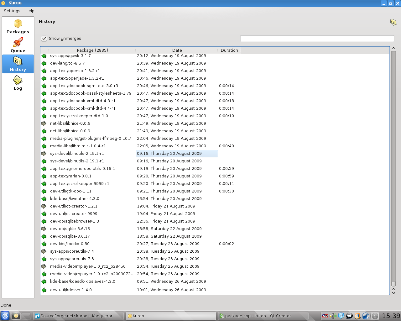 Kuroo is a graphical frontend to Portage that integrates into the K-Desktop-Environment and covers most common maintenance tasks on Portage based systems.