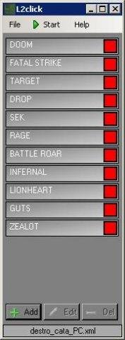 L2click is program that automates mob killing in Lineage 2. It can read pixels on the screen and simulates pressing keys F1 - F12. This program is invisible for server because it do not modifies packets.