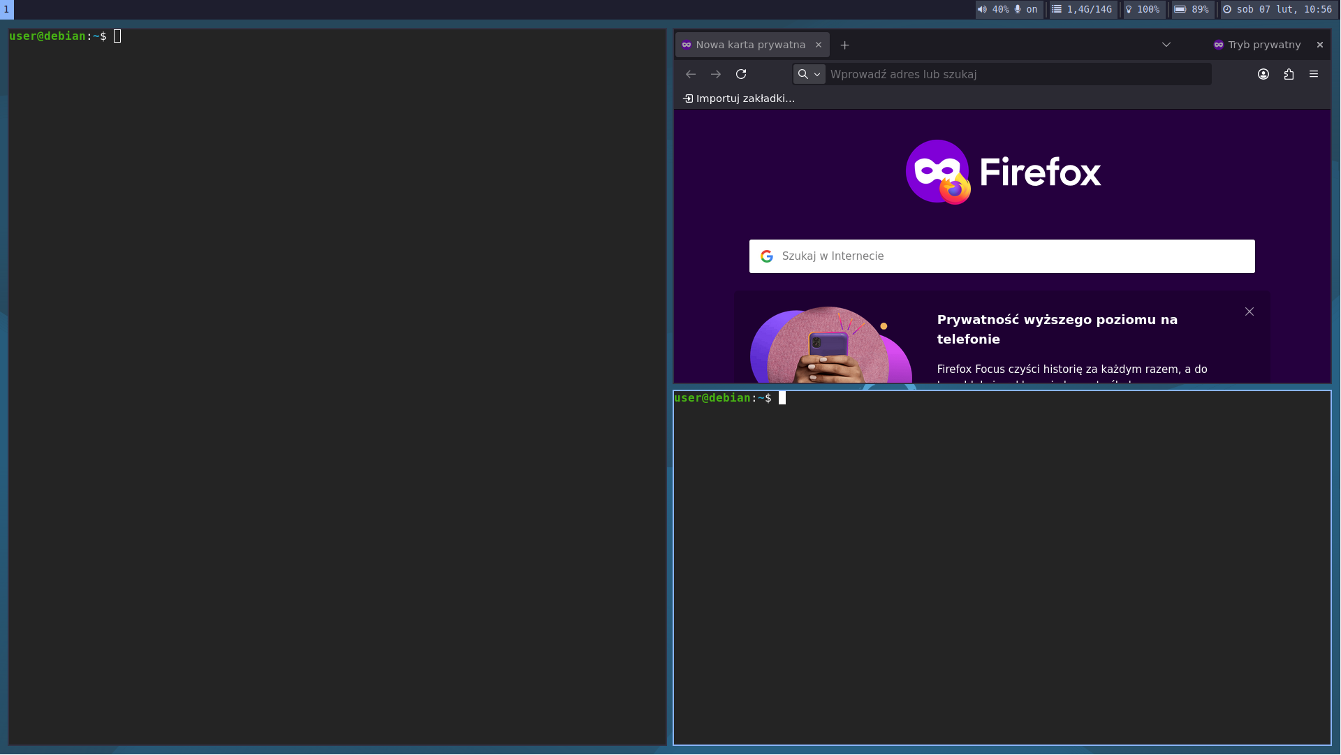 LajtLinux to hobbystyczny zestaw lekkich obrazów Debiana Testing z minimalistycznym Waylandem i lekkimi menedżerami okien (sway, river, labwc, niri, mangowc, dwl).