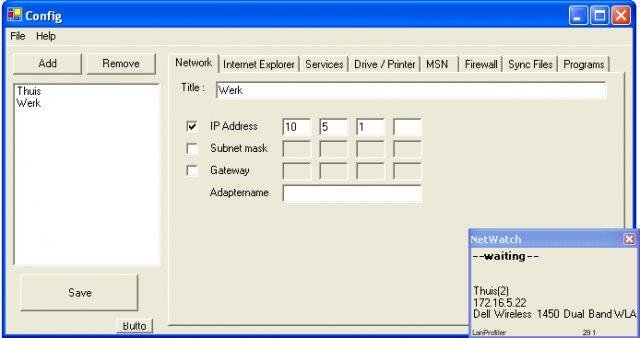 VB.NET program to keep track of your network connection. When starts and by changes in you network (i.e. different LAN) Settings of IE, shares and backup of file are being set and started.