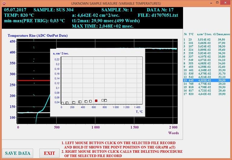 This program is designed to measure thermophysical properties of materials (thermal diffusivity and specific heat) by the laser flash method.