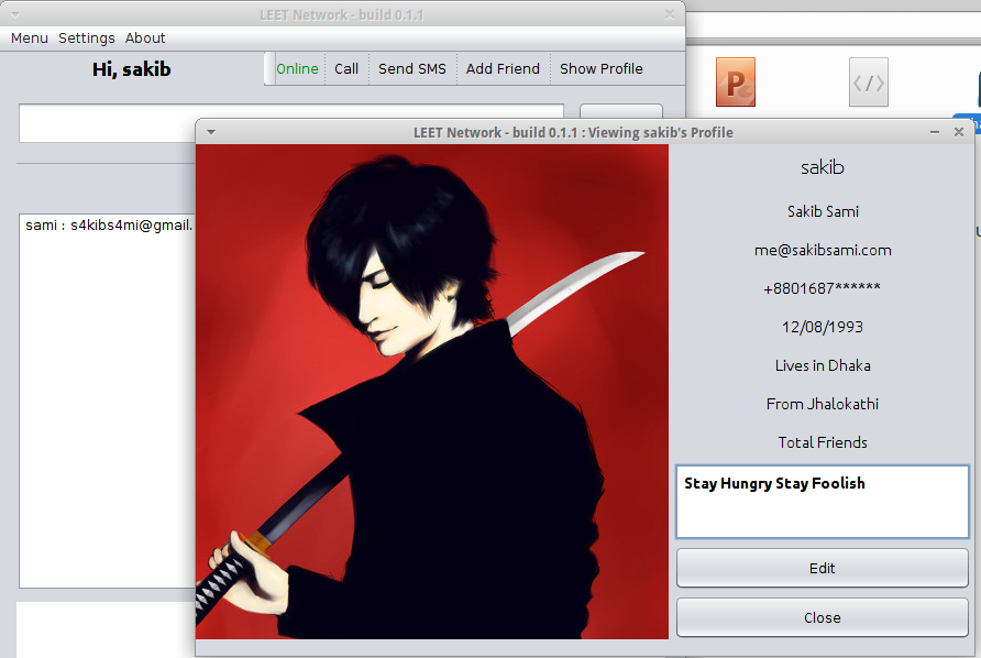 'Leet Network is a free chatting client Based on java technologies. Within a friend on chat you can send text message,transfer file and send emoticon and many more.Let enjoy with every moment with your loved one anonymously.