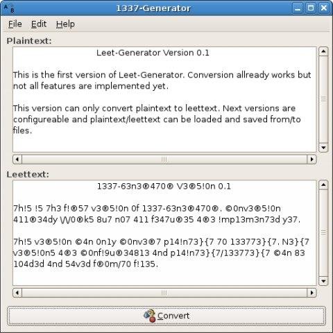 1337-Generator converts normal plaintext into leettext. Leet configuration will be added in one of the next releases.