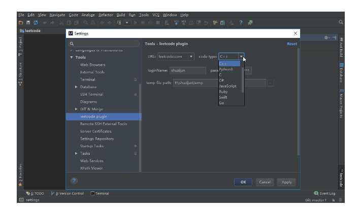 Do Leetcode exercises in IDE, support leetcode.com and leetcode-cn.com, to meet the basic needs of doing exercises.Support theoretically: IntelliJ IDEA PhpStorm WebStorm PyCharm RubyMine AppCode CLion GoLand DataGrip Rider MPS Android Studio. The login accounts of the two websites are not interoperable and the corresponding users need to be configured when switching websites. You can also refresh and load questions if you are not logged in, but you cannot submit it. Input the content and press Enter to search , press again to search for the next one. It can only search under the question bank node. Clean up the files in the configured cache directories. The cache directories of the two websites are different and only the current configured websites are cleaned up. Carefully clean up cases without submitting.