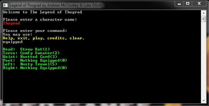 Legend Of Thograd is a free text based game made by Scottish students for fun. Please feel free to download and give us feedback and/or advice. The game is so far incomplete.