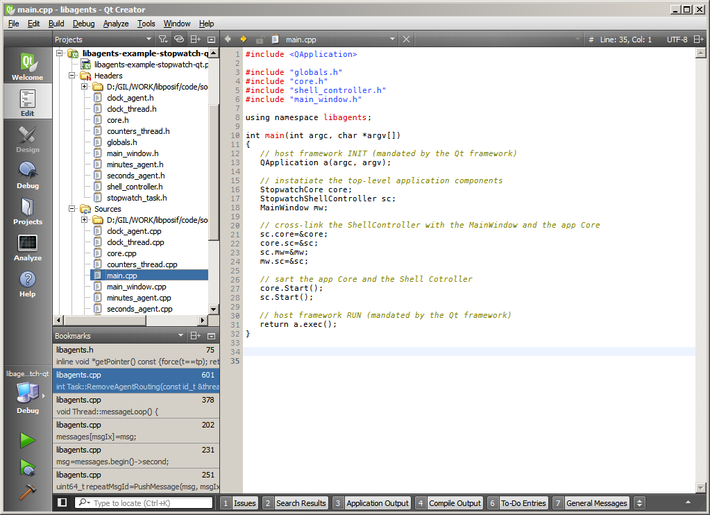 libagents is a C++11 implementation of the "Actor Model" (http://en.wikipedia.org/wiki/Actor_model). The libagents API allows for a natural decoupling of the core application logic from the application shell, thus facilitating the development of easily portable applications.