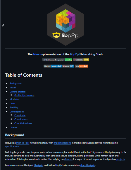 Nim-libp2p is a Nim implementation of the libp2p networking stack, facilitating the development of peer-to-peer applications with modular and extensible network protocols.