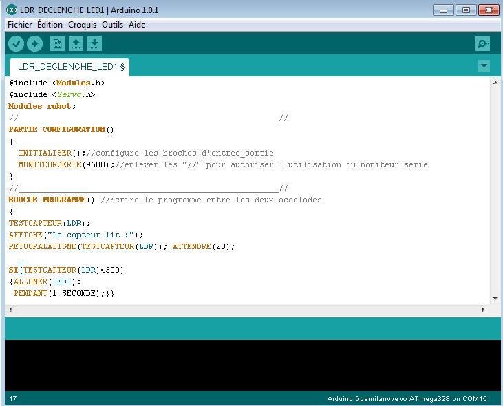 Librairie ou bibliothèque à utiliser avec arduino. La librairie consiste à créer des fonctions francisées qui permettent d'utiliser des modules électroniques attribués à certaines entrées/sorties de la carte.