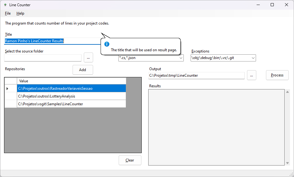 Application can be used to count lines of full project repositories generating an HTML report depicting counting per folder and file type.