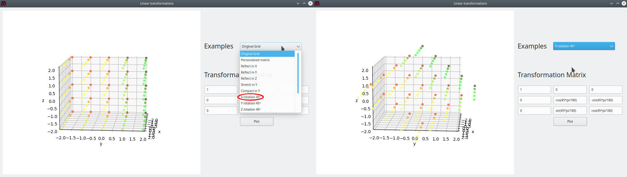 A linear transformation is a function from one vector space to another that respects the linear structure of each vector space. For visualizing this we can transform a vector, but it has an obvious problem, because the linear transformation transform the whole space, not just the vector, in other words it transforms the basis vectors thus every vector in the space gets transformed too. That's why i created this app so everyone can see how a transformation matrix change the whole space.