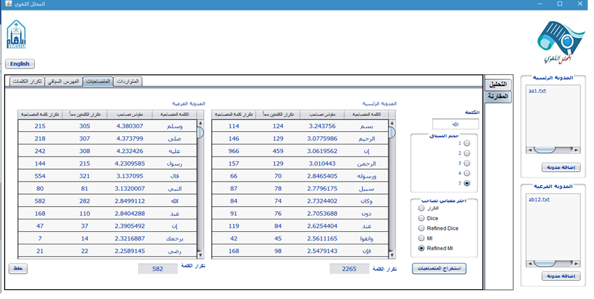 The Linguistic Analyzer (Almuhalil Alloghawy) is a free tool designed by a team from Al-Imam Muhammad bin Saud islamic university that can be used for corpus analysis and comparison in terms of the several linguistic characteristics, such as frequency lists generation, concordances, collocation extraction, the difference between two words, and keyword identification.