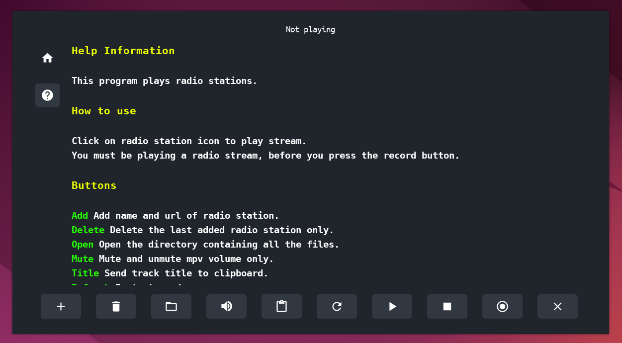 I have included some dot desktop files and a png image. Put these files in /home/user/Documents/radio_dotdesk/.