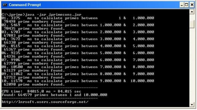 JPrime is a java benchmark application for overclockers. Working on all operation syetem. You can run JAR-packaged applications with the Java interpreter. The basic command is: java -jar jar-file (ex :~$ java -jar jprimecons.jar)
