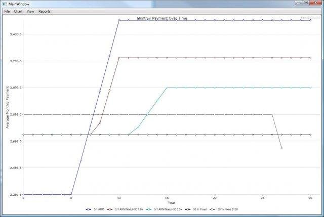 - Plots monthly payments over time (for adjustable rates)
