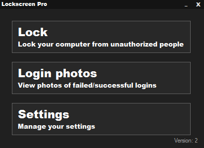 Lockscreen Pro's main feature is to lock your computer screen to not give other people access to it. You can simply unlock your computer with a password or an USB flash-drive. Every time someone enter a wrong password, Lockscreen will take a snapshot using your computers webcam. This will give you information about who tried to get into your computer.