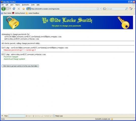 A user friendly password changing website that allows the user to synchronize their password across several different systems, and then, once synced, change them all at once. Supports OpenLDAP and Active Directory.