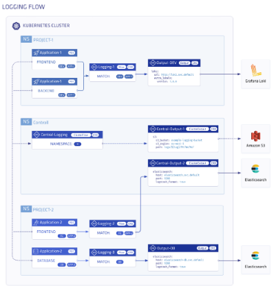 The Logging operator solves your logging-related problems in Kubernetes environments by automating the deployment and configuration of a Kubernetes logging pipeline. The Logging operator manages the log collectors and log forwarders of your logging infrastructure, and the routing rules that specify where you want to send your different log messages. You can filter and process the incoming log messages using the flow custom resource of the log forwarder to route them to the appropriate output. The outputs are the destinations where you want to send your log messages, for example, Elasticsearch, or an Amazon S3 bucket. You can also define cluster-wide outputs and flows, for example, to use a centralized output that namespaced users can reference but cannot modify.