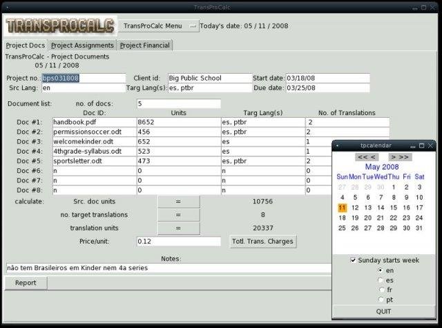 TransProCalc: cross-platform tool for managing project docs and assignments, and financial data for translation projects.