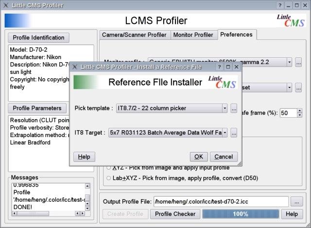 LProf is an open source color profiler that creates ICC compliant profiles for devices such as cameras, scanners and monitors. Origanally authored by Marti Maria the creator of LCMS. Marti has graciously consented to the creation of this project.