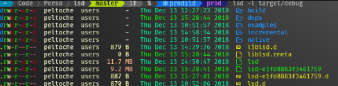This project is heavily inspired by the super colorls project but with some little differences. For example it is written in rust and not in ruby which makes it much faster. Install the patched fonts of powerline nerd-font and/or font-awesome. Have a look at the Nerd Font README for more installation instructions. Don't forget to setup your terminal in order to use the correct font. lsd can be configured with a configuration file to set the default options. On non-Windows systems lsd follows the XDG Base Directory Specification convention for the location of the configuration file. The configuration dir lsd uses is itself named lsd. On Windows systems lsd only looks for the config.yaml files in one location. You can also provide a configuration file from a non standard location.