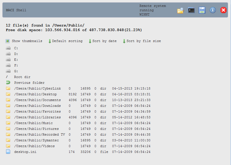 Maci web shell is a single-file multi-purpose multi-platform script written using PHP. It will work (With some exceptions) in any system that uses Apache+PHP. You just need to copy the script to the web server working dir and the script will allow you to browse files remotely, run commands, upload content and watch the configuration.