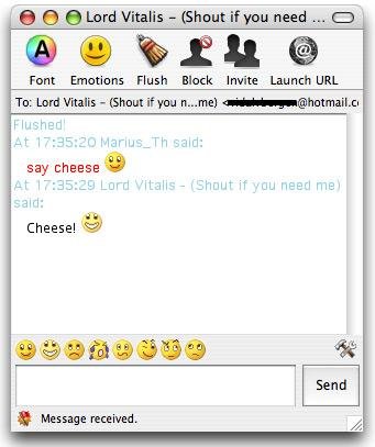 Mac Messenger is a MacOS 8/9/X client for Microsoft's MSN Messenger Service. It features full contact management, single and group chat, emoticons, fonts and colors. It includes many other features to make your chat experience even more enjoyable.