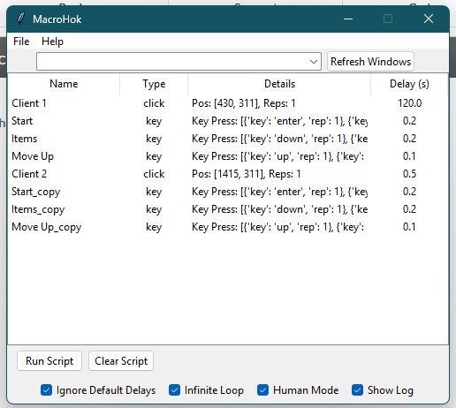 MacroHok is an easy-to-use Windows automation tool that helps you record and replay mouse clicks, key presses, and scroll actions. It’s perfect for games, workflows, or everyday tasks that require repetitive actions. With MacroHok, you can record your movements, set custom delays with countdowns, control how many times each action repeats, and run them all with one click. A floating log window shows recent actions in real time, and you can toggle it anytime. The clean interface organizes actions in a simple table where you can edit, duplicate, delete, or reorder items. You can also save and load presets for future use, or target specific windows so everything runs smoothly. Enable “Human Mode” to make clicks and movements appear more natural for improved detection safety. MacroHok also supports global hotkeys—ALT + X to record clicks, ALT + K for key presses, and ALT + Q to stop macros instantly. No coding needed—just record, run, and relax.