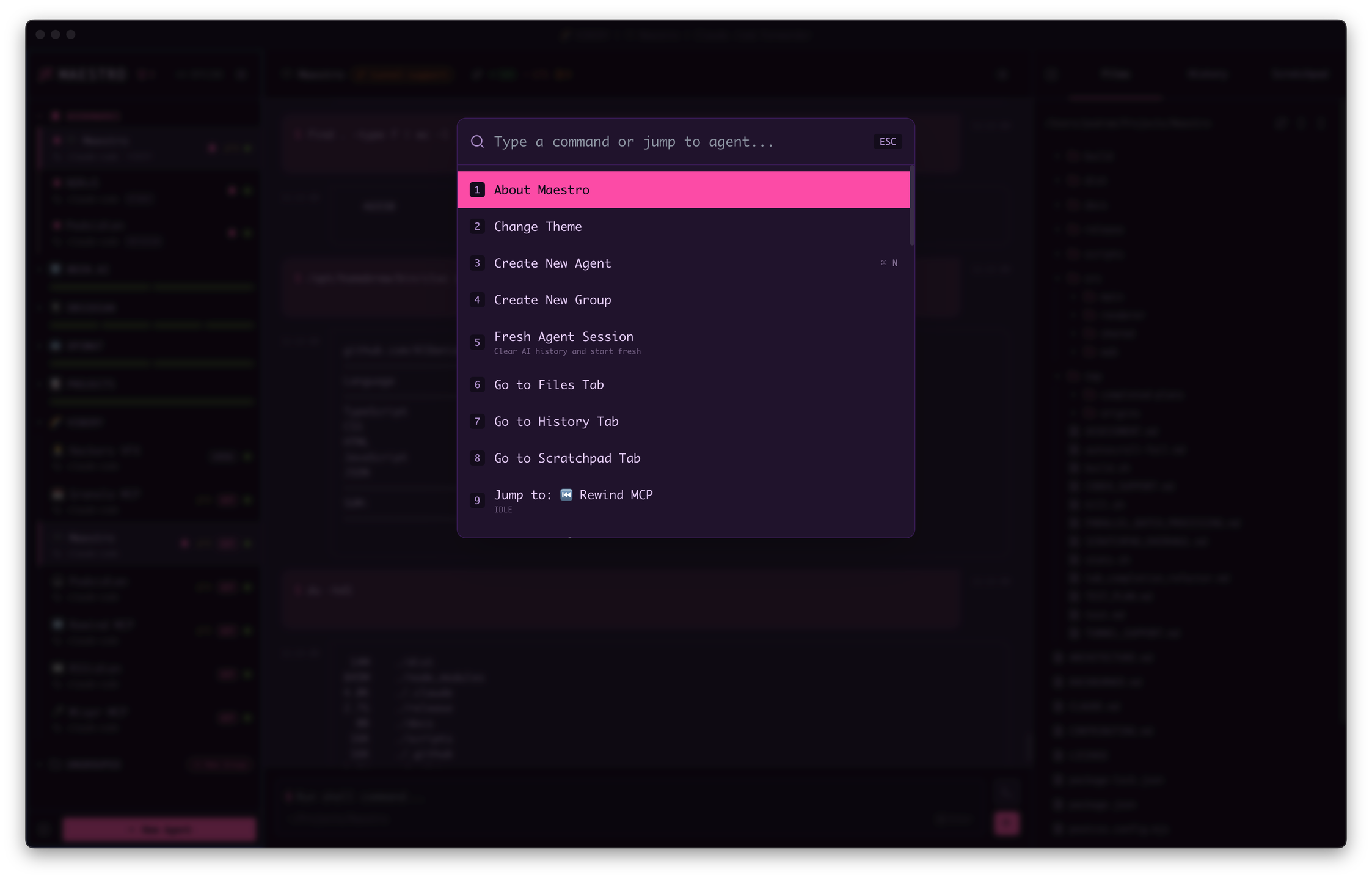 Maestro is a cross-platform desktop app for orchestrating your fleet of AI agents and projects. It's a high-velocity solution for hackers who are juggling multiple projects in parallel. Designed for power users who live on the keyboard and rarely touch the mouse.