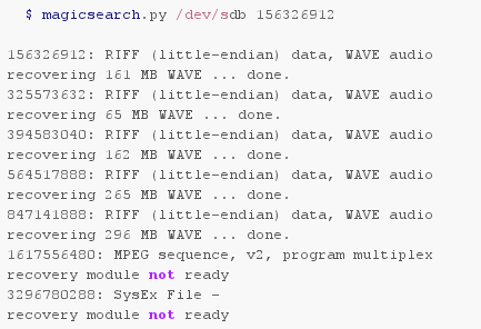 Search a data block for magic MIME identifiers and try to recover the found data using file type specific header information.