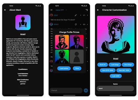 Maid is a cross-platform Flutter app for interfacing with GGUF / llama.cpp models locally, and with Ollama and OpenAI models remotely. Maid is a cross-platform free and open source application for interfacing with llama.cpp models locally, and remotely with Ollama, Mistral, Google Gemini and OpenAI models remotely. Maid supports Sillytavern character cards to allow you to interact with all your favorite characters. Maid supports downloading a curated list of Models in-app directly from hugging face.