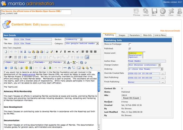 Mambo is a mature, award winning, feature rich content management system used for everything from simple websites to complex corporate applications. NOTE: Files here are older releases only. Please visit http://mambo-code.org for the latest releases.
