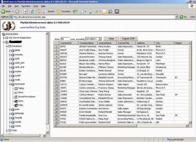 Mammo is web application database tool for manage data on Ms SQL Server, like Enterprise Manager , phpmyadmin