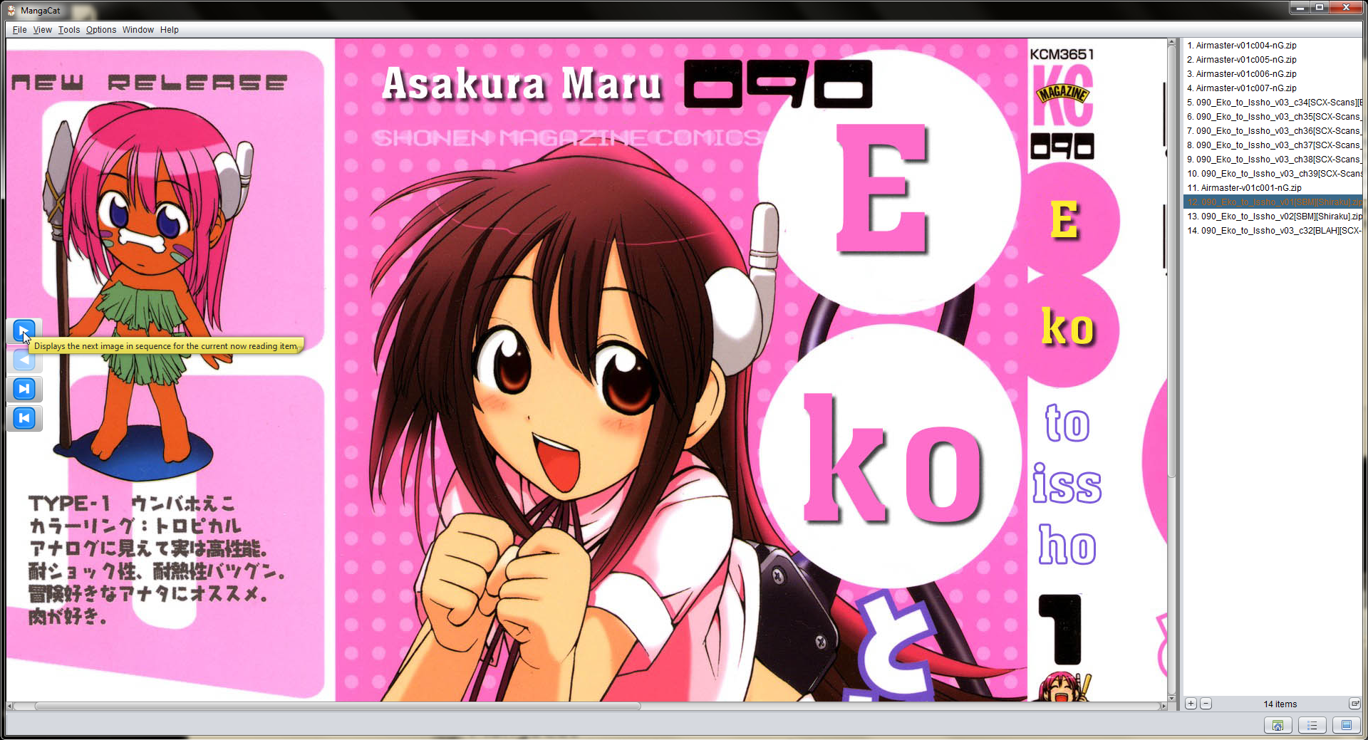 Once you have imported your manga files into the Media LIbrary, you can read your manga files through the built in manga reader.