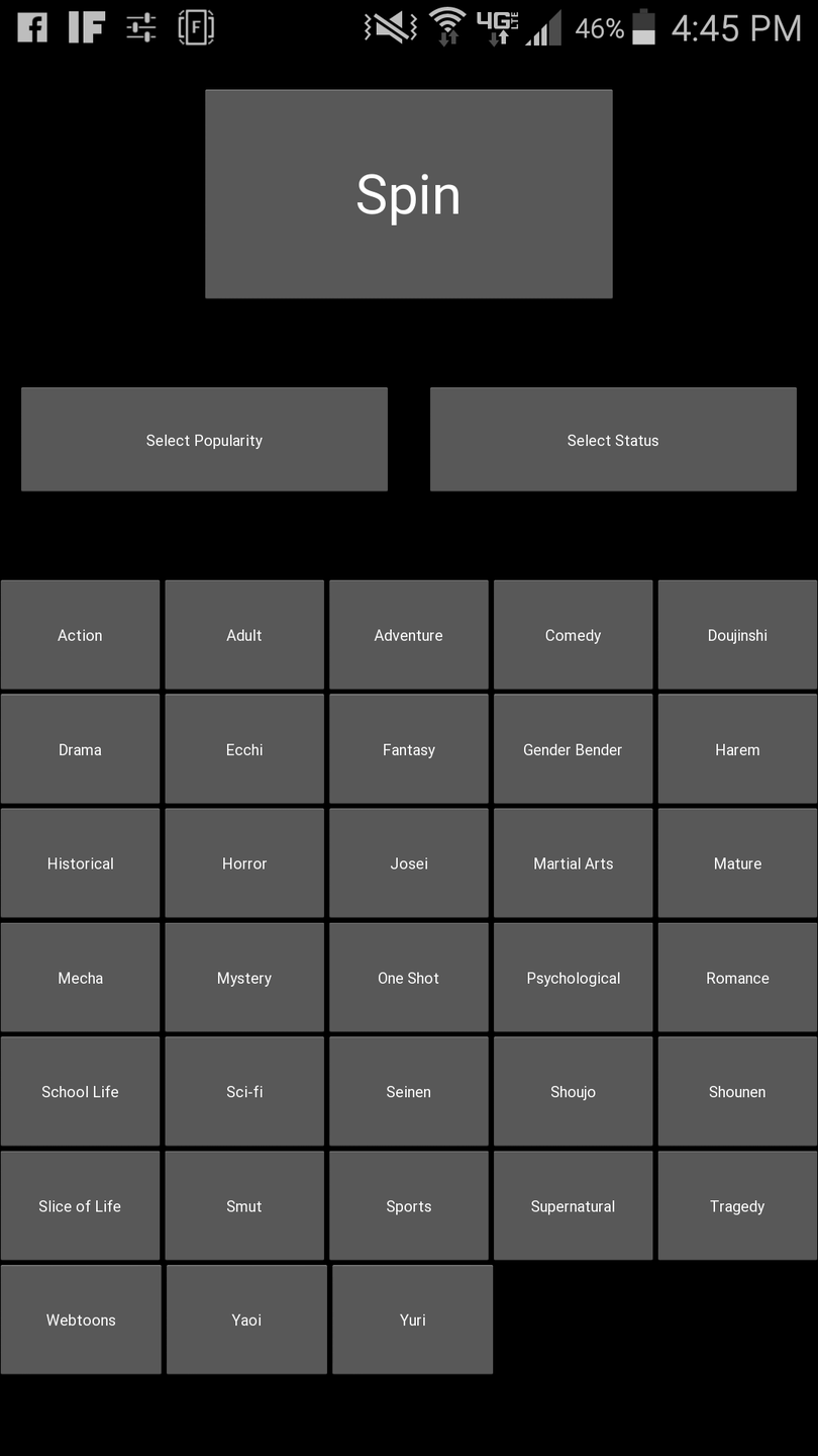 Get new Manga/Manhwa/Comics selections at random from mangaeden.com. Narrow your selections by genre, popularity, and publication status. Not affiliated in any way with mangaeden.com. Made using Kivy.