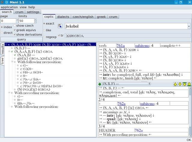 Coptic - English and Coptic - Czech dictionary related to Crum's coptic dictionary, written in C++, based on MySql, with Qt GUI. Is developed as part of project Marcion, containing only coptic data without study environment.