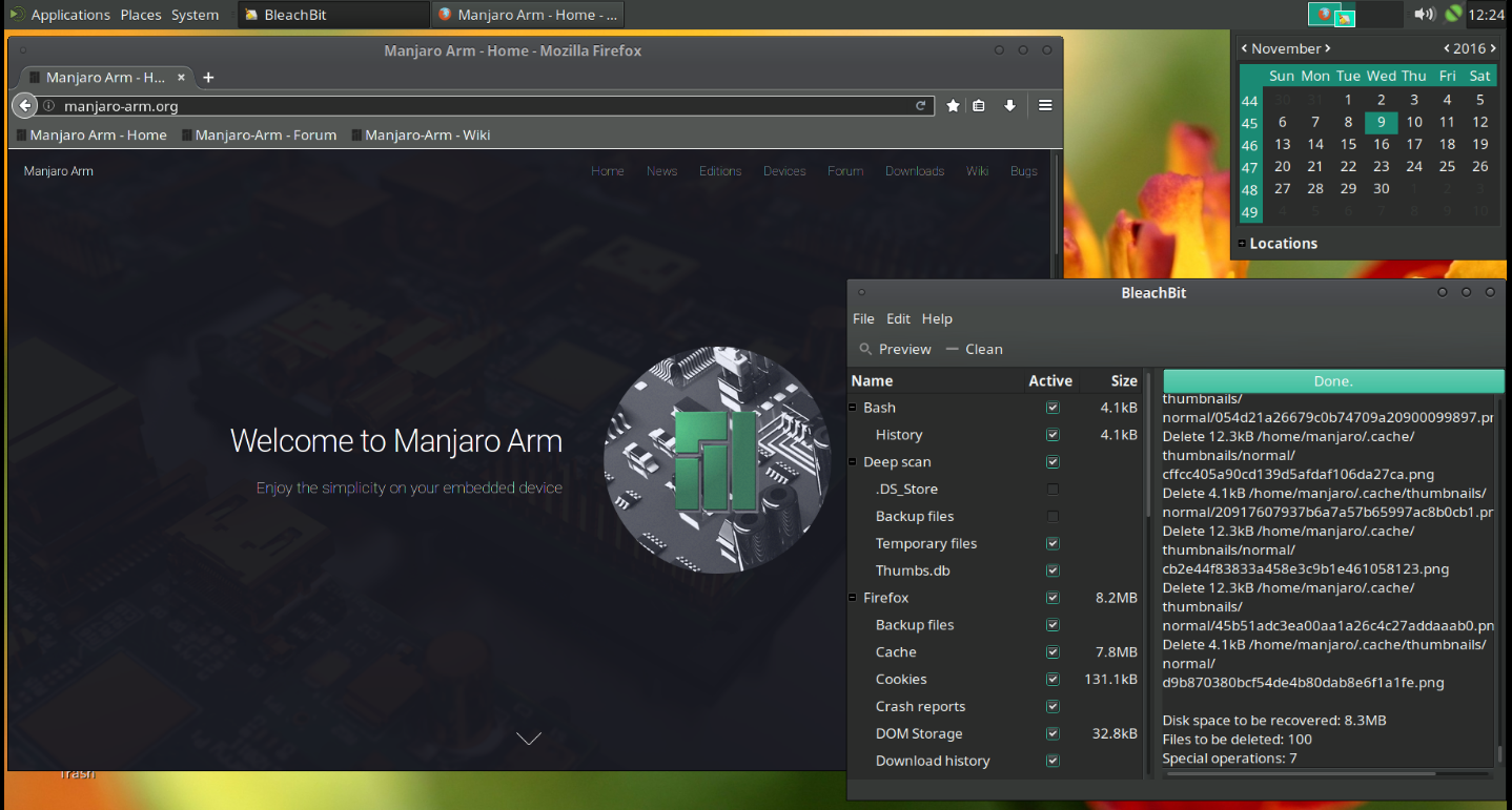 Just like Lxqt, this edition is based on Manjaro-Arm 16.08 Minimal. Except for standard GPU and sound drivers it contains a set of basic applications: