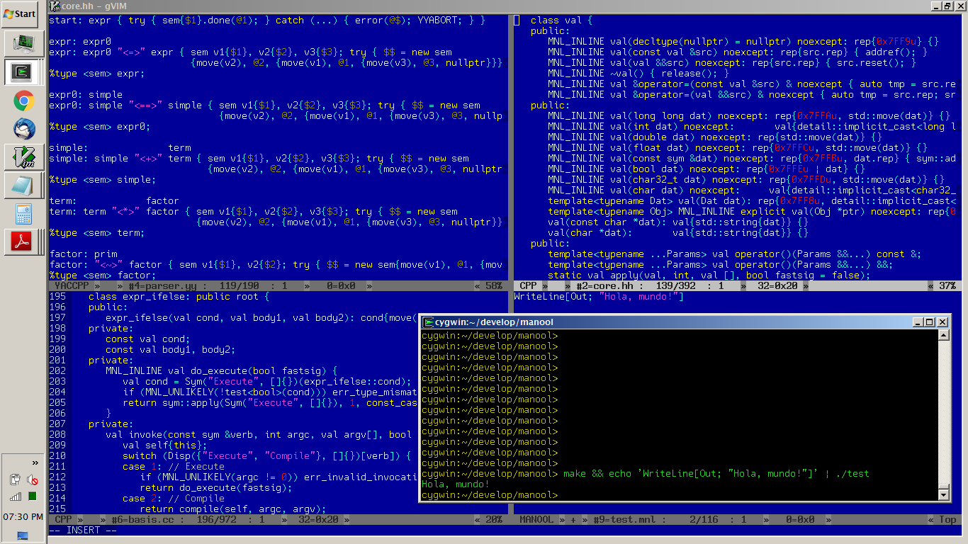 MANOOL is a practical, homoiconic, dynamic, multiparadigm general-purpose programming language with a functional core. It has high expressive power but is implemented in less than 10K LOC of optimized, idiomatic C++11 for native run-time environments.
