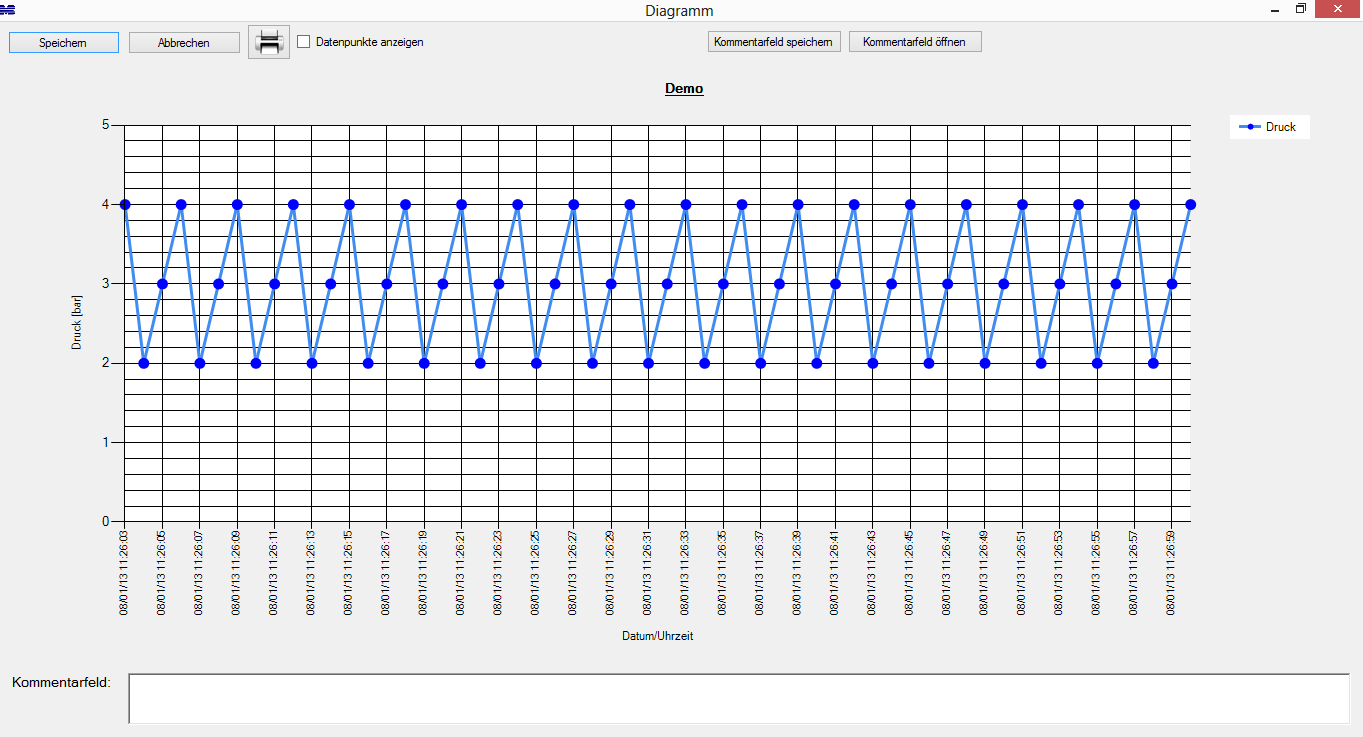 Software for configuration of the manolog III and for evaluation of data with a line chart. For Demo use the "Demo 2013.01.08 11.26.01.txt"
