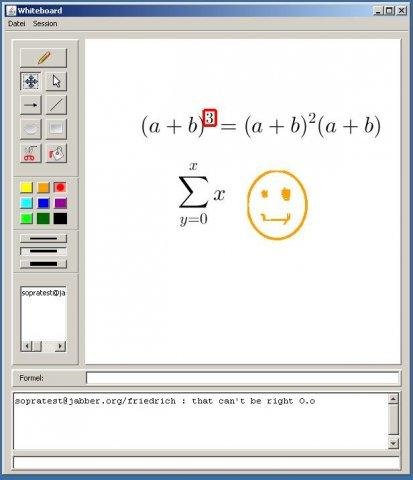 Java based whiteboard for group chat with latex support using XMPP (Jabber).