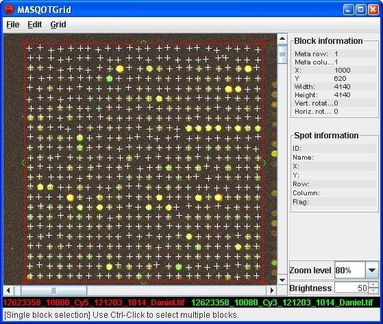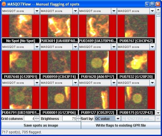 MASQOT-GUI is an open-source, platform-independent application for two-channel microarray spot quality control. Included is a set of tools for gridding, segmentation, quantification, multivariate spot quality assessment and data visualization.