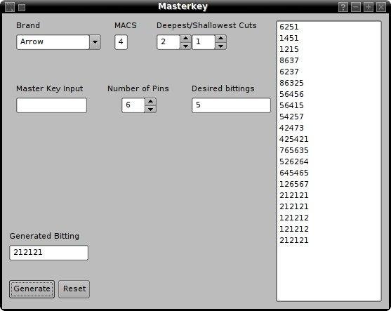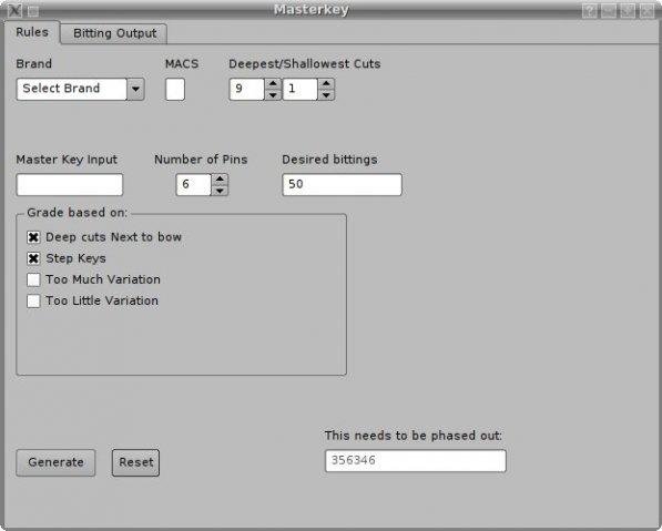 Open Source Master key generation software. Programmed in C++ and QT4. Used by Locksmiths to create master key systems for apartment complexes, or other large buildings where access control is needed.