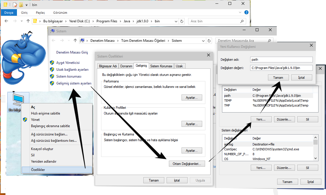 Sisteminizde Java SE Runtime Environment ve Java SE Development Kit yüklü olmalıdır
