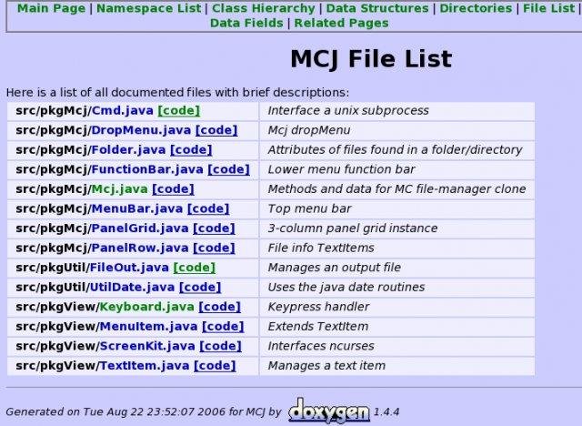Mcj links to Ncurses via the Cygnus Native Interface. Doxygen provides